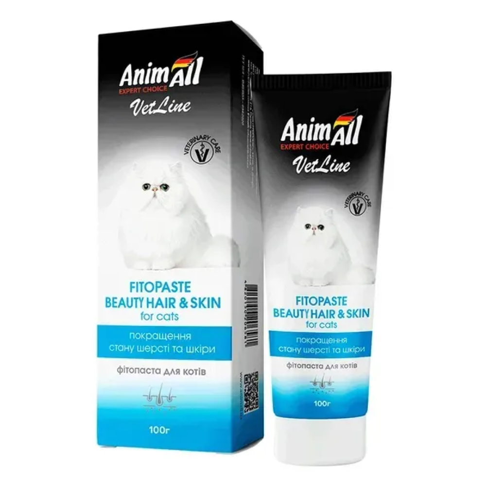 Фитопаста AnimAll VetLine Beauty Hair&Skin предназначена для ежедневного употребления котам старше 10-ти недель для улучшения качества шерсти. Изготовлена паста из натуральных ингредиентов под влиянием низких температур методом измельчения сырья, что способствует сохранению всех важных питательных веществ для котов. Она улучшает качество шерсти, в разы ускоряет ее рост и делает её блестящей и красивой, а также гарантирует коту крепкие когти. Кроме того, продукт помогает легко и быстро перенести животному период линьки и улучшает процессы пищеварения. В целом, с фитопастой AnimAll VetLine ваш любимец всегда будет здоров и красив!
