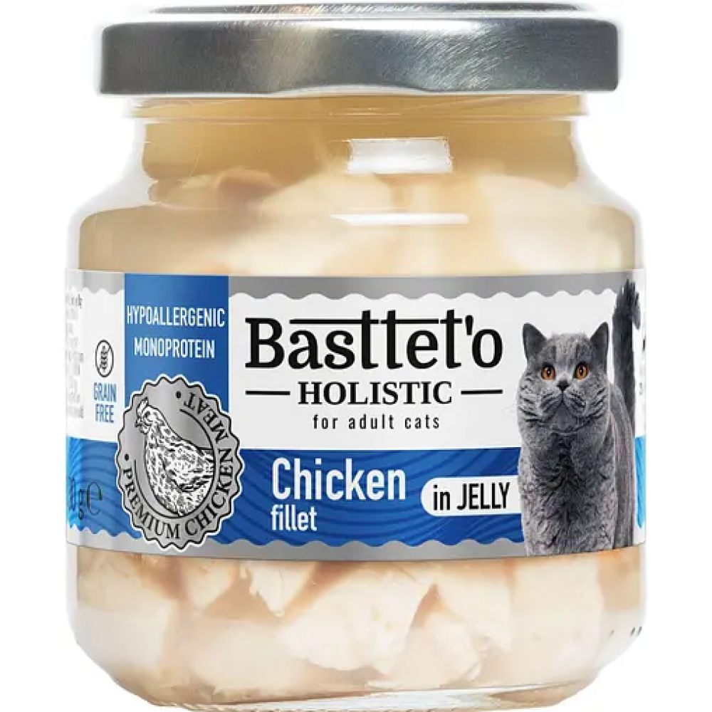Влажный корм для кошек Basttet'o - это линейка продуктов для кошек, предлагающая широкий ассортимент высококачественных консервов. Он создан с учетом потребностей кошек разного возраста, здоровья и вкусовых предпочтений. Вкусные кусочки куриного филе в желе из натурального бульона с ананасом.Влажный корм изготовлен из натуральных продуктов, таких как мясо курицы, говядины, рыбы, овощи и специальные добавки для поддержания здоровья'я. Этот корм подходит для кошек разного возраста и потребностей, от молодых котят до взрослых, а также для кошек с особыми пищевыми требованиями. Basttet'o помогает поддерживать здоровье кожи, шерсти и общее состояние здоровья вашего любимца; Натуральные ингредиенты, бережно обработанные для сохранения всех вкусовых качеств, обеспечат вашего пушистого спутника невероятным удовольствием от каждого приема корма;