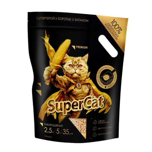 Кукурузный наполнитель SuperCat комкующий для кошачьих туалетов 2.5 кг, 5л