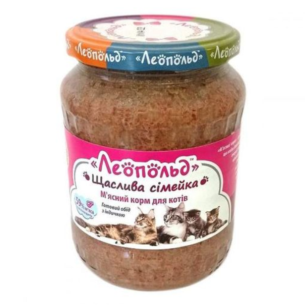 Влажный корм для кошек Леопольд "Счастливая семейка" готовый обед – это сбалансированный корм для полноценного питания домашних любимцев.