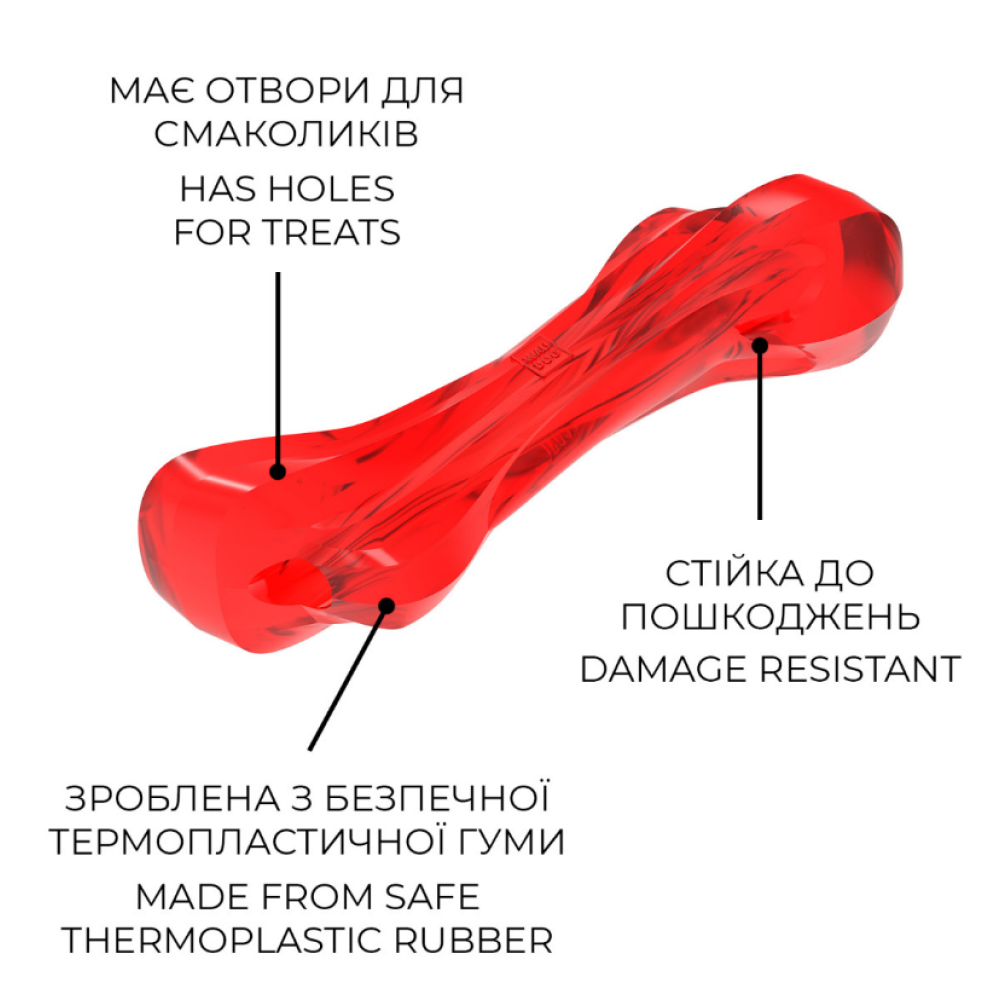 Игрушка "Кость" - это идеальный выбор для собак, которые любят интерактивные игры. Благодаря большому отверстию, игрушку можно наполнить различными видами лакомств, что позволяет занять питомца на длительное время.