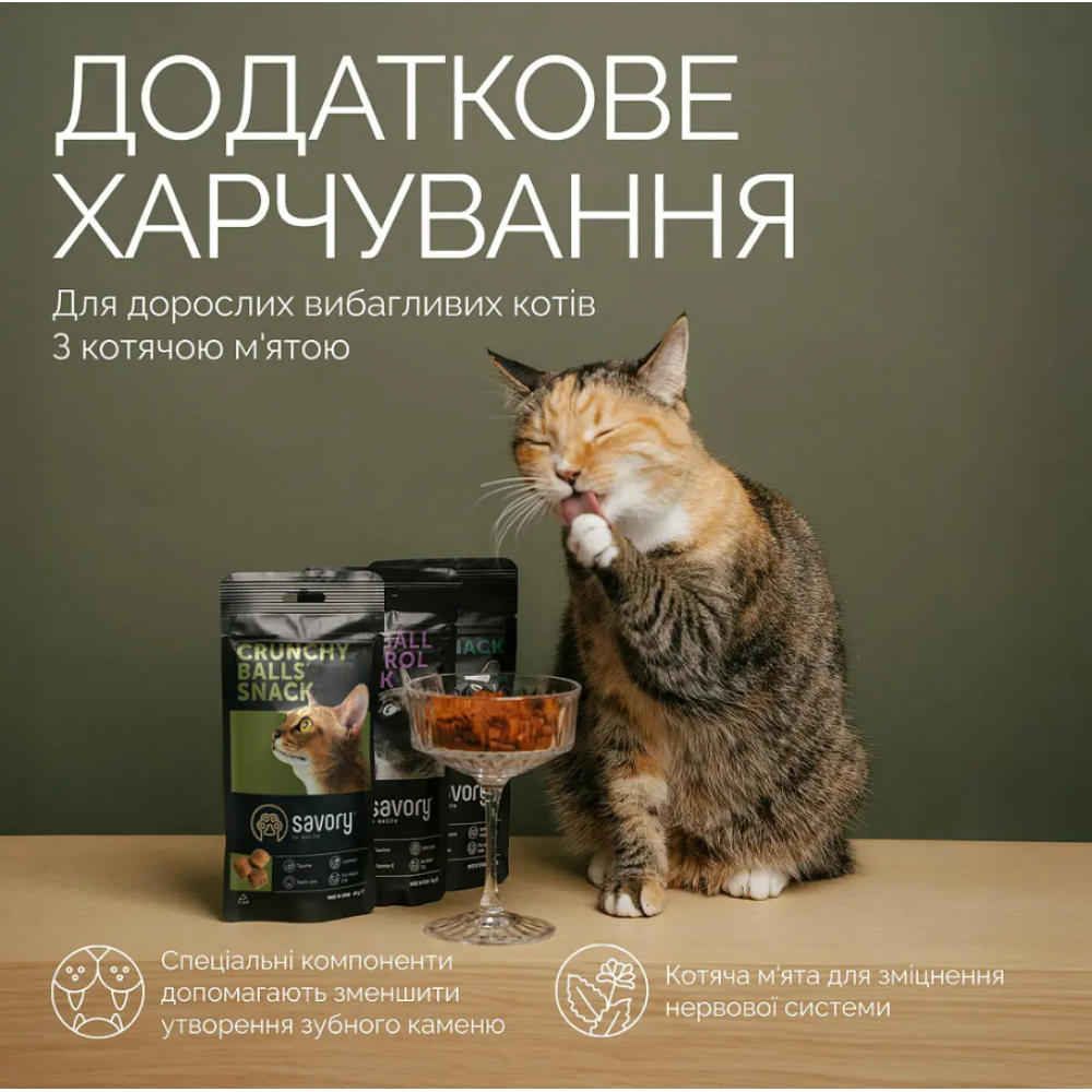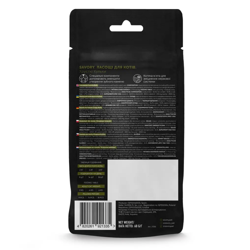Savory Crunchy Balls Snack — это вкусные и полезные хрустящие лакомства, созданные специально для привередливых котов. Благодаря добавлению кошачьей мяты они привлекают даже самых капризных питомцев, даря им удовольствие и пользу для здоровья.