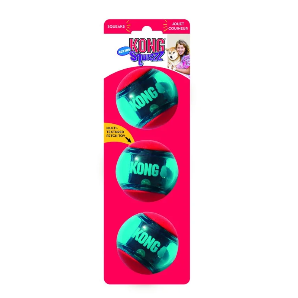 KONG Squeezz Action Ball - это забавная игрушка в виде пищащего мяча, созданная для того, чтобы придать больше азарта и острых ощущений в повседневной игре. Собаки обожают гоняться за мячом, и ваша собака будет просто в восторге от этой упругой игрушки. Ярко окрашенный мяч специально разработан так, чтобы собаке было удобно его хватать и грызть.