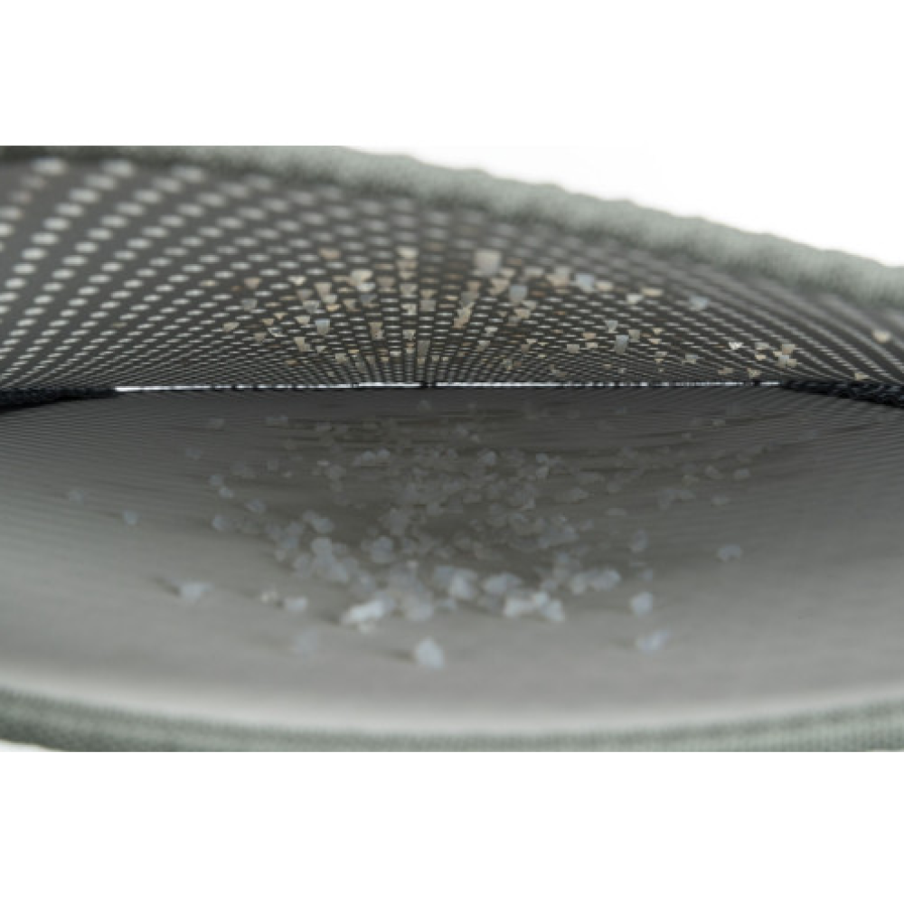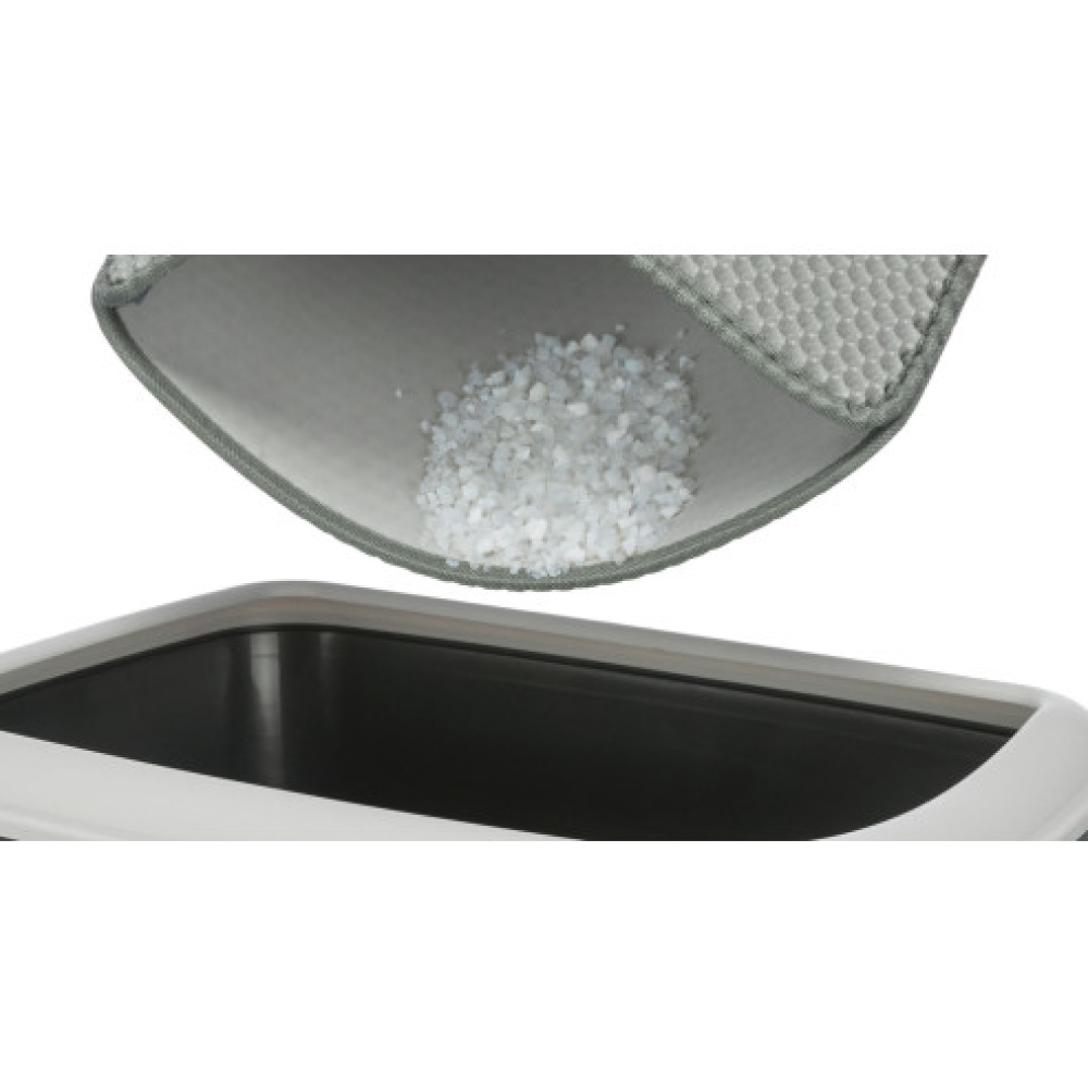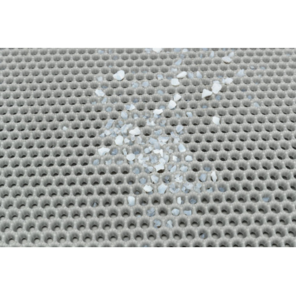 Благодаря двум слоям, соединенным застежкой-липучкой, этот коврик удерживает рассыпанный наполнитель и другую грязь и очень легко чистится.