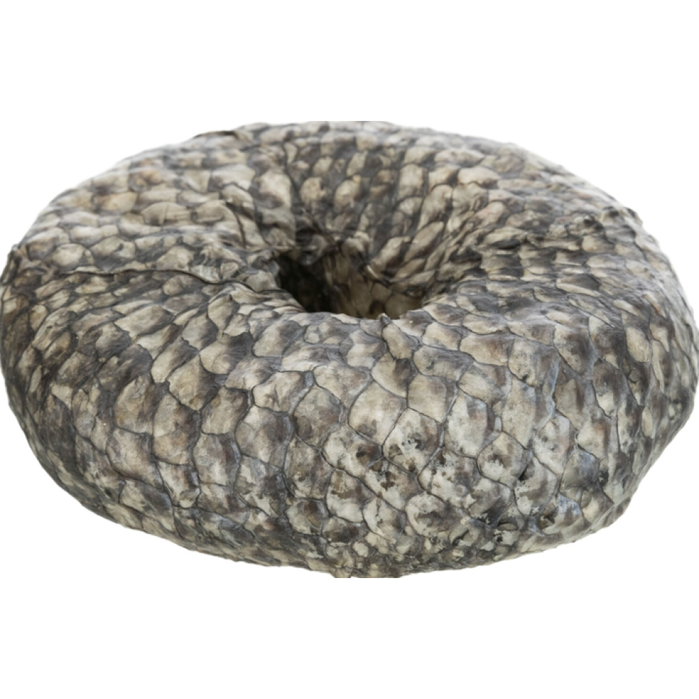 Предложите своей собачке лакомство Trixie Denta Fun Fish Chewing Ring Denta Fun! Это жевательный пончик изготовлен из сыромятной кожи и покрыт рыбой.