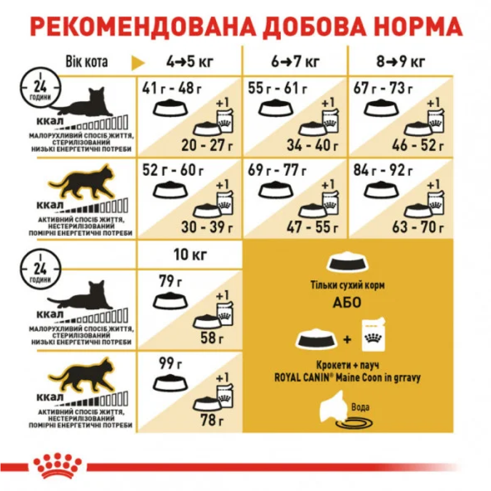 - Специально разработанная Крокетта кубической формы адаптирована для больших квадратных челюстей кошек породы мейн-кун. Уникальная Крокетта поощряет разгризання корма, помогает поддерживать гигиену ротовой полости.