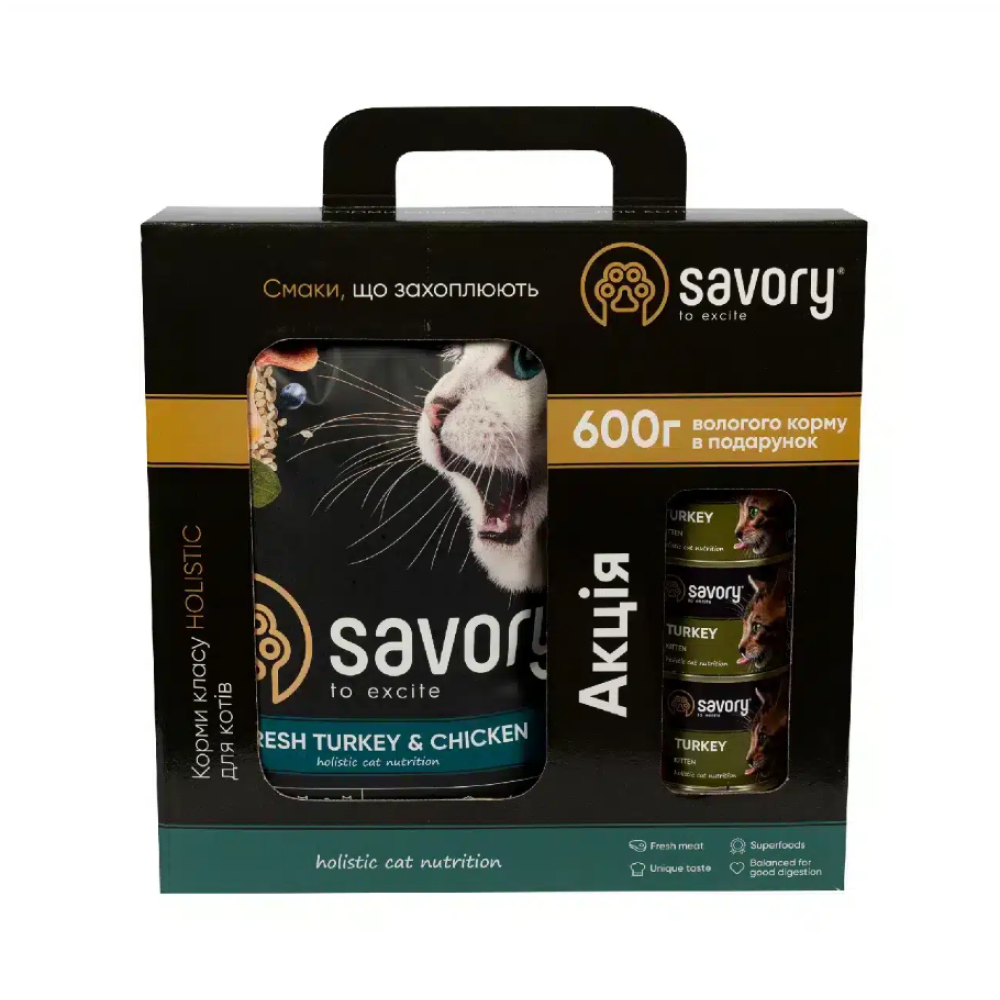 Сухой корм Savory для котят со свежим мясом индейки и курицы, 2 кг – 1 шт.