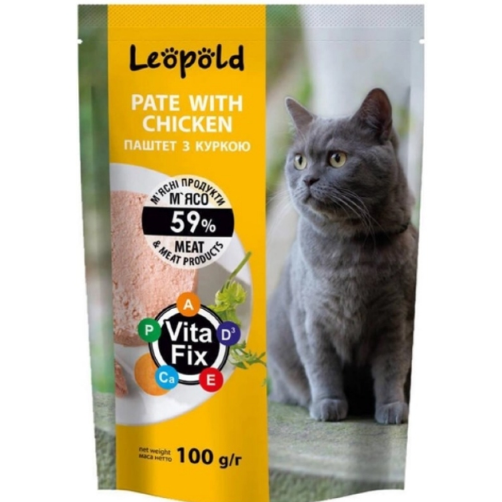 Влажный корм в виде паштета Леопольд - это полноценное и сбалансированное питание для взрослых кошек. В нем содержится не менее 59% мяса и мясопродуктов, а также все необходимые витамины и минералы. Корм имеет нежную консистенцию и приятный вкус, который понравится вашей кошке. Изготовлен из высококачественных ингредиентов, прошедших тщательный контроль качества. Корм не содержит ГМО, консервантов и красителей.