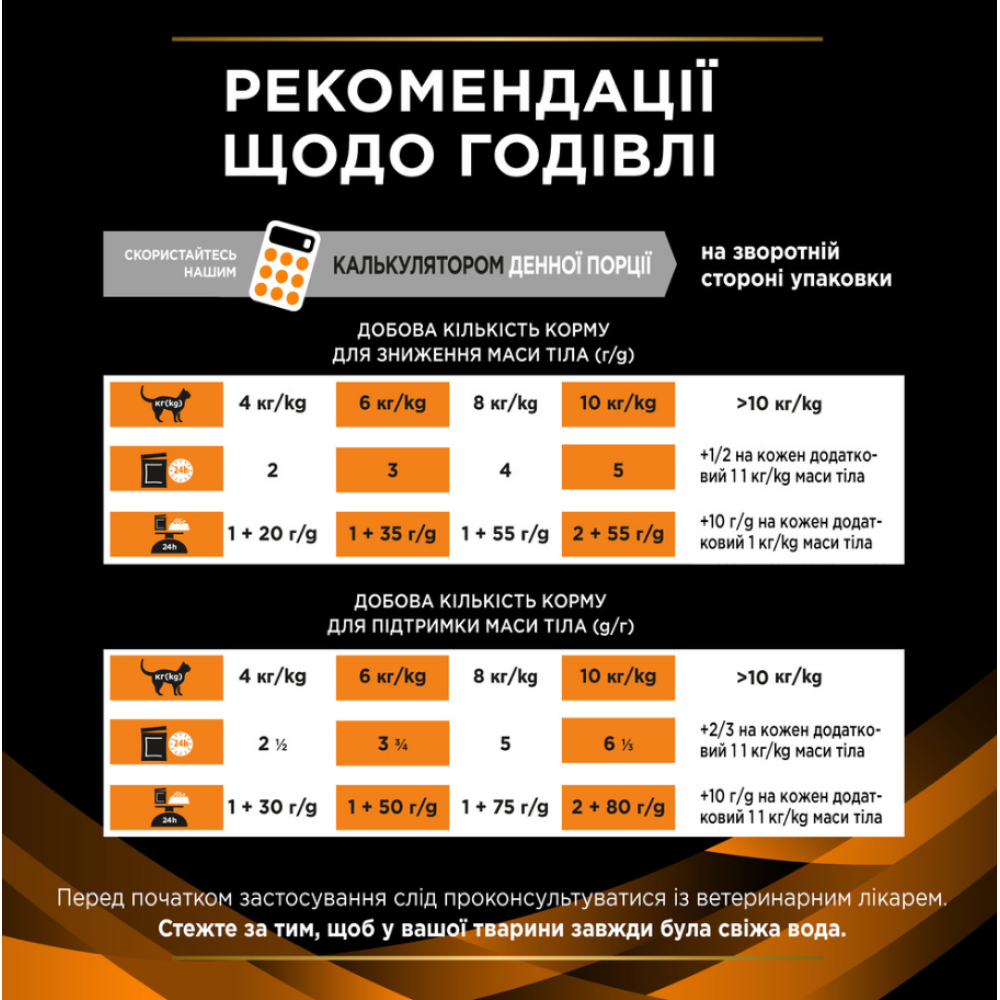 Перед началом или продлением срока использования корма рекомендуется консультация ветеринарного врача. Следите за тем, чтобы у вашего животного всегда была свежая вода.