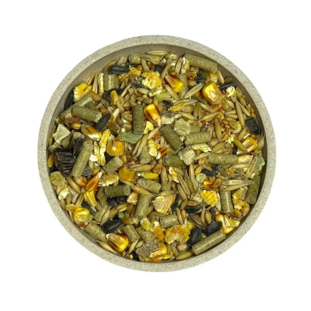 Состав: смесь гранулянтов, гранулят прессованной люцерны, овес, пшеница, овощной коктель, семена рапса, пшеница, фруктовый коктель, кукуруза, смесь различных видов проса, семена льна, семена подсолнечника;