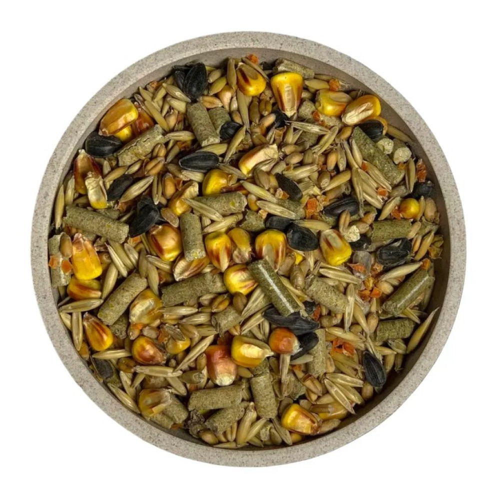 Состав: овес, пшеница, кукуруза, гранулят прессованной люцерны, семена подсолнечника, смесь различных видов проса, овощной коктель, смесь гранулянтов;