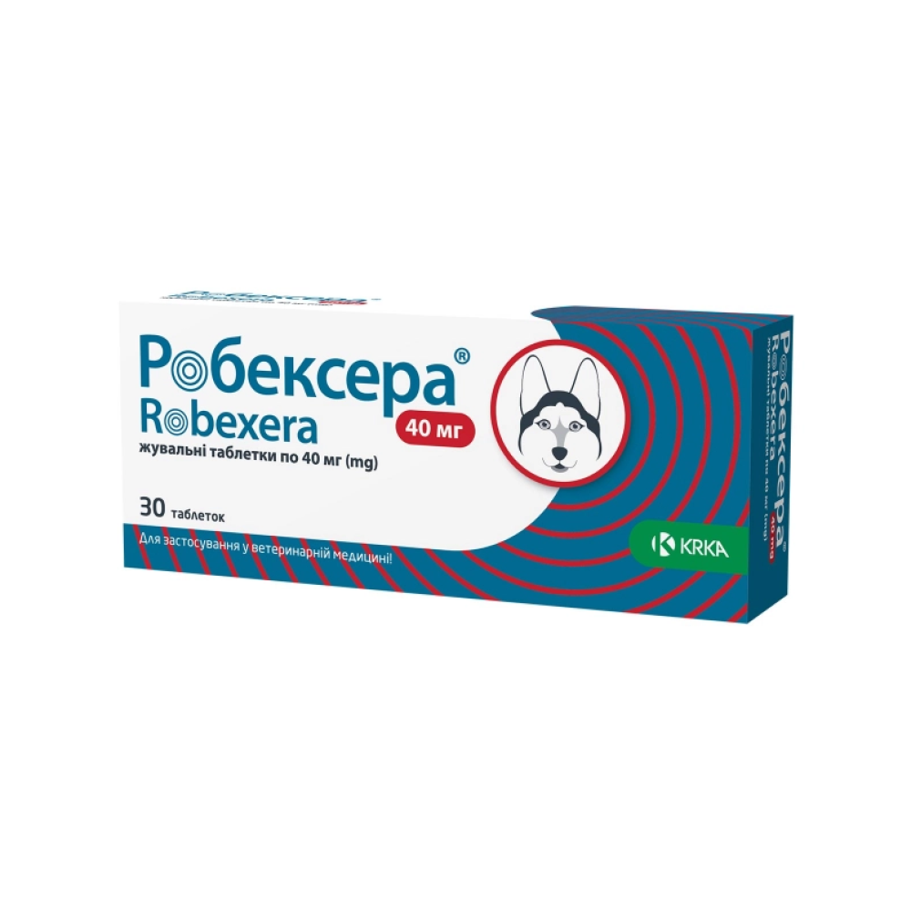 KRKA Робексера - нестероидное противовоспалительное средство (НПВС), специально разработанное для применения в ветеринарии. Обладает выраженным обезболивающим и противовоспалительным действием, что делает его эффективным при лечении различных воспалительных процессов и болевых синдромов у собак.