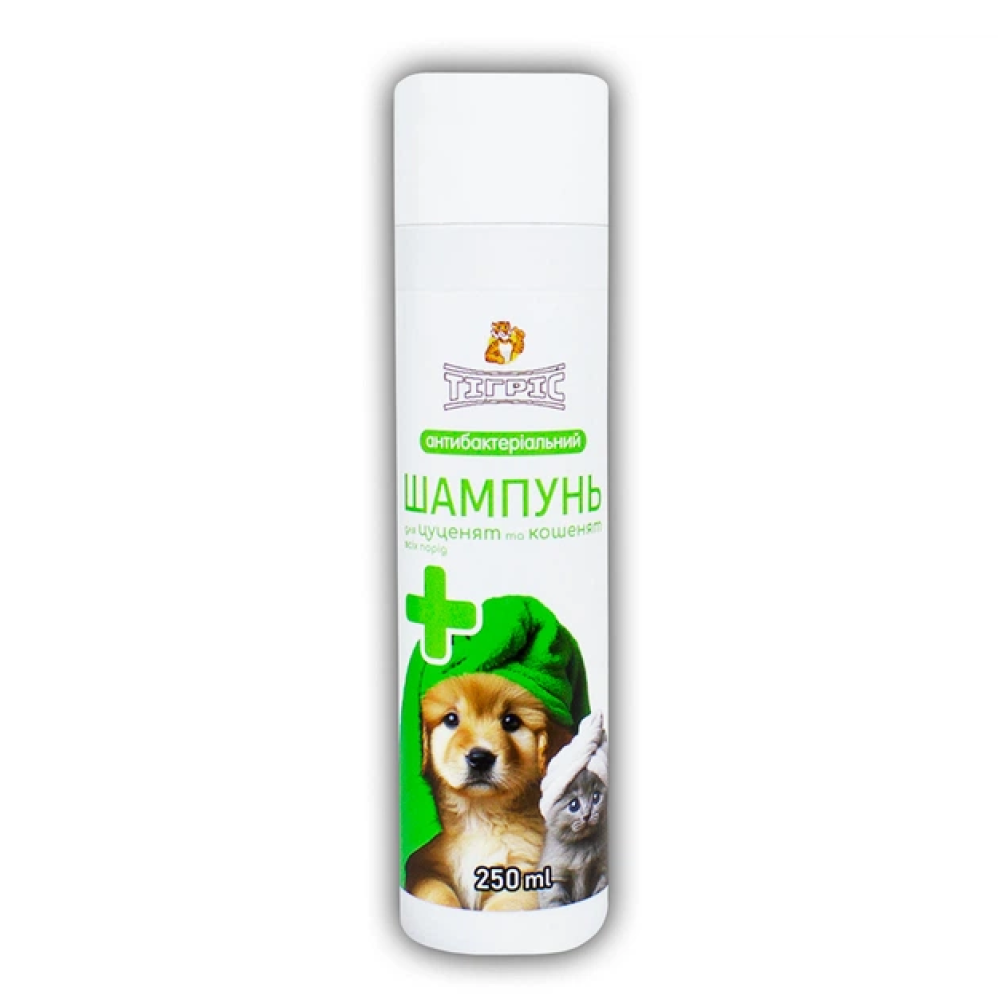 Шампунь Тигрис антибактериальный для щенков и котят всех пород, 250 мл.Назначение: шампунь предназначен для тщательной очистки кожи и шерсти щенков и котят.Благодаря активным компонентам, входящим в состав, в частности, экстракт гвоздики, стада, дегтя.березового – средство проявляет мощные антисептические свойства и противопаразитарное действие. Способный успокаивать раздраженную кожу, улучшать рост и внешний вид шерсти.Способ применения: нанести шампунь на мокрую шерсть животного, равномерно распределить по всей поверхности тела, вспенить, избегая попадания на слизистые и предотвращая слизывание шампуня.Через 3-5 минут тщательно смыть теплой водой, шерсть высушить и расчесать. При необходимостиповторить функцию. Для удобства использования шампунь можно разводить водой в соотношении1:5. Побочных эффектов и осложнений при применении данного средства в соответствии с настоящим описанием не наблюдается.Меры предосторожности: не рекомендуется обрабатывать больных животных, а также щенков и котят в возрасте до 4-х недель. При попадании средства на слизистые смыть большим количеством воды. Обратиться к ветеринара по необходимости.Не использовать при индивидуальной непереносимости компонентов средства.Условия хранения: средства хранят в плотно закрытой таре на расстоянии не ближе 1 м отнагревательных приборов при температуре от +5 0 С до +25 0 С в крытых складских помещениях, в сторонеот источников солнечных лучей.Хранить в местах, недоступных для детей и животных