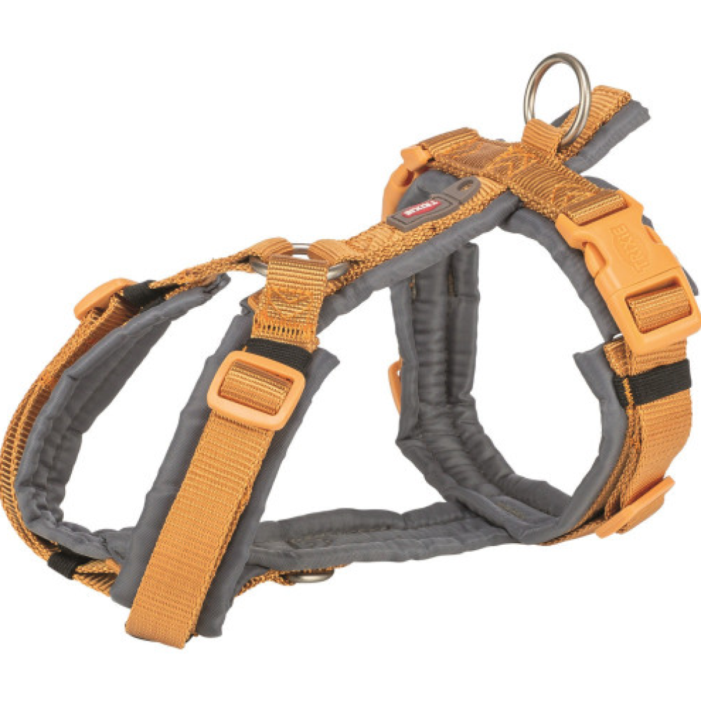 Шлея Trixie Premium трекинговая идеально подходит для ежедневных прогулок с собакой, гарантируя вам надежный контроль, а питомцу – безопасность. Она изготовлена из прочной ременной ленты, имеет мягкую обивку по всему кругу. Ремешки на шее и животе регулируются, что позволяет подогнать шлейку под индивидуальные размеры собаки. Имеется дополнительное кольцо для крепления поводка в области груди и петля для крепления жетона или мигалки.