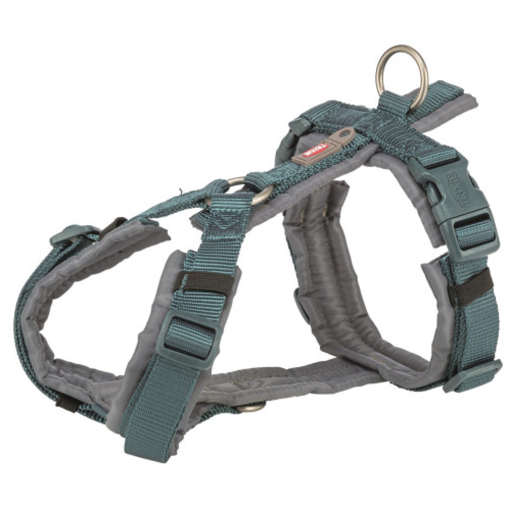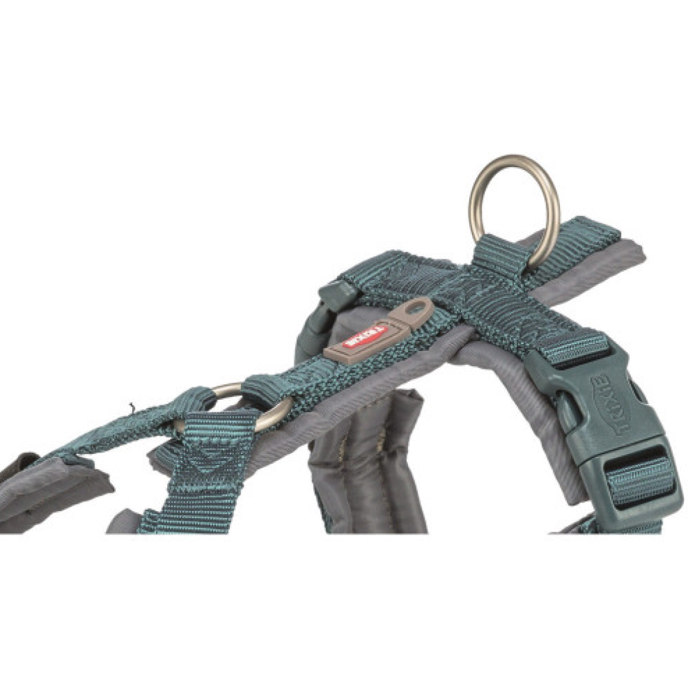 Шлея Trixie Premium трекинговая идеально подходит для ежедневных прогулок с собакой, гарантируя вам надежный контроль, а питомцу – безопасность. Она изготовлена из прочной ременной ленты, имеет мягкую обивку по всему кругу. Ремешки на шее и животе регулируются, что позволяет подогнать шлейку под индивидуальные размеры собаки. Имеется дополнительное кольцо для крепления поводка в области груди и петля для крепления жетона или мигалки.