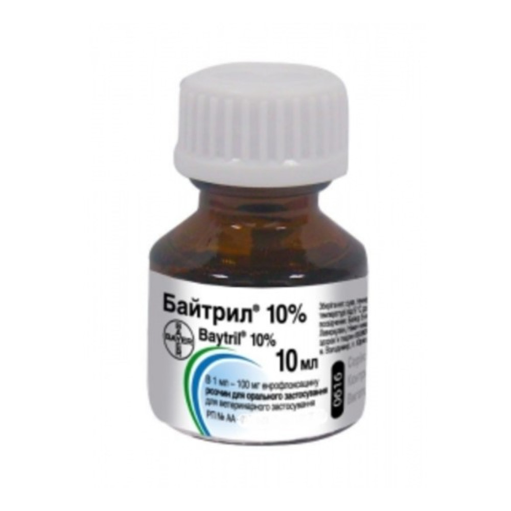 Кількість голів птиці× середня маса птиці в кг × 0,1 = загальний об'єм (мл) Байтрилвет® 10% у питну воду на добу.
