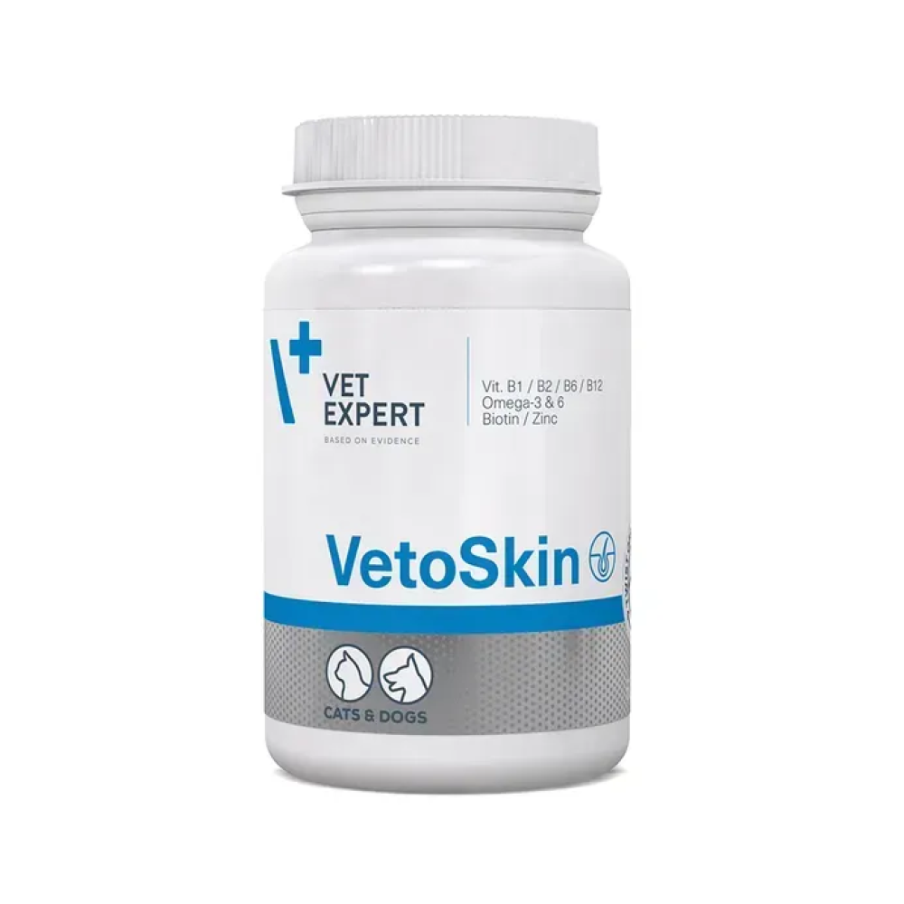 Vet Expert VetoSkin (Вет Експерт ВетоСкін) – харчова добавка для котів і собак для підтримання здоров'я шкіри та якості шерсті. Баланс омега жирних кислот забезпечує всіма необхідними речовинами для покращення функції шкіри.