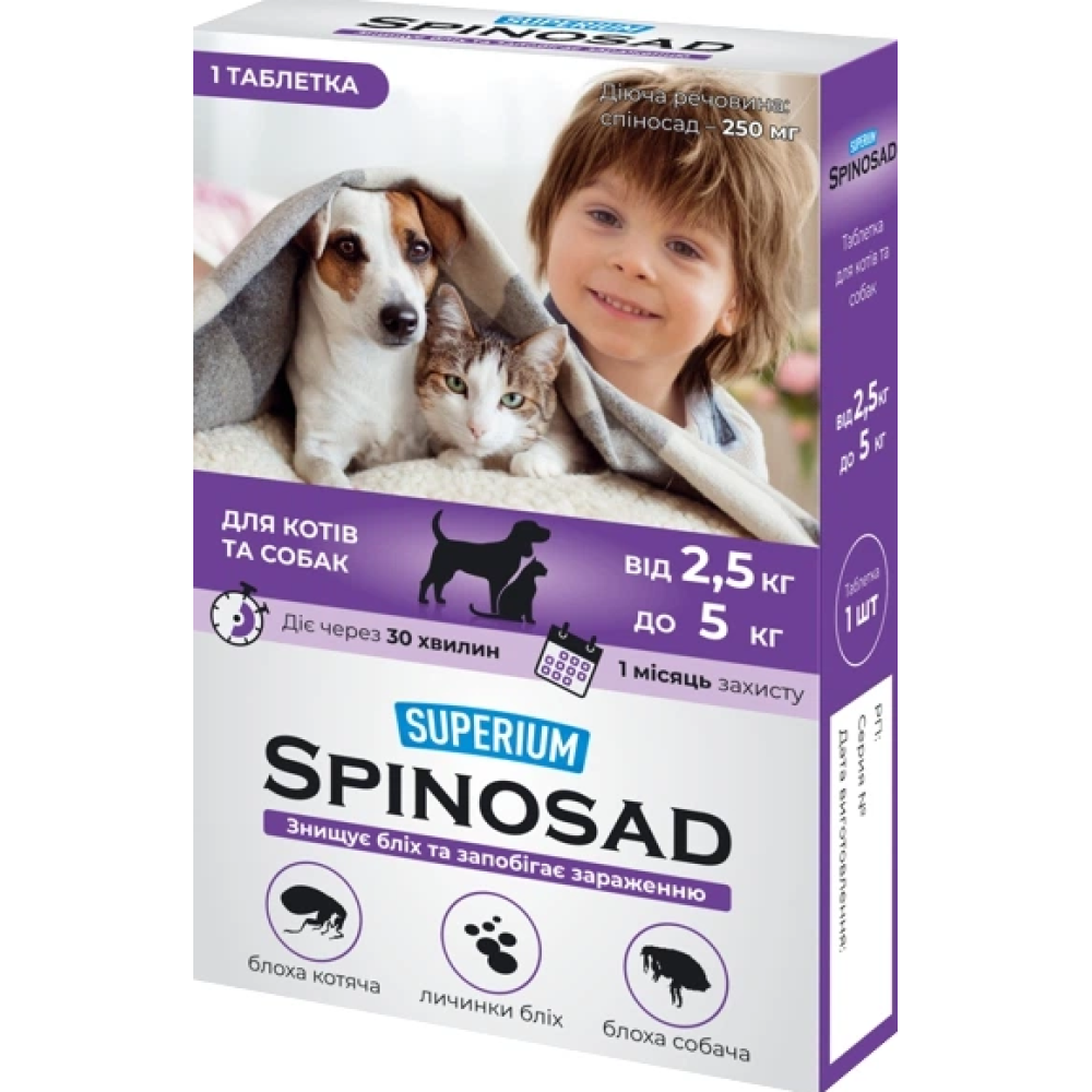 Superium Spinosad - препарат для котів та собак вагою від 2,5 до 5 кг та віком з 4 місяців. Особливістю препарату є те, що його можна давати молодим тваринам із низькою вагою.
