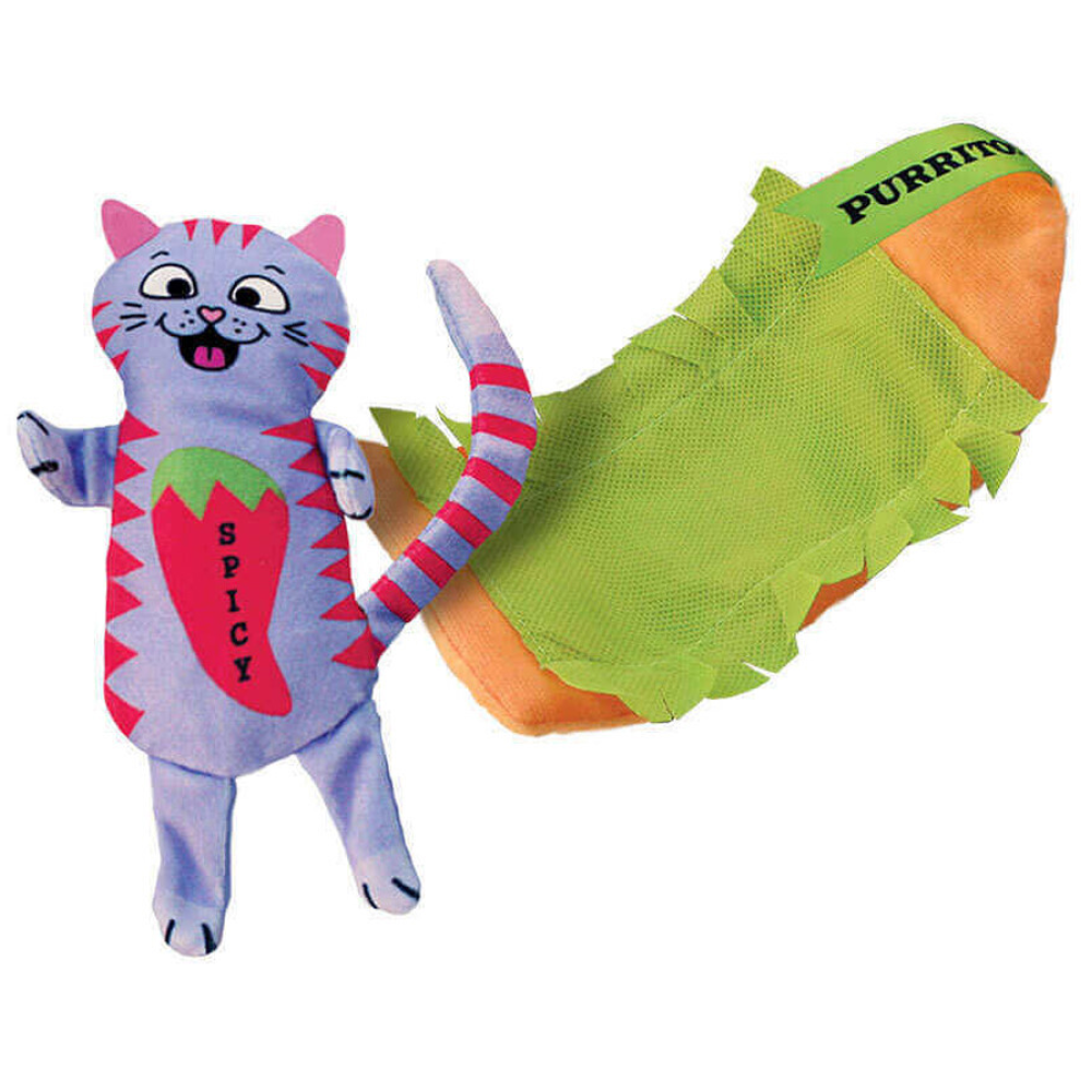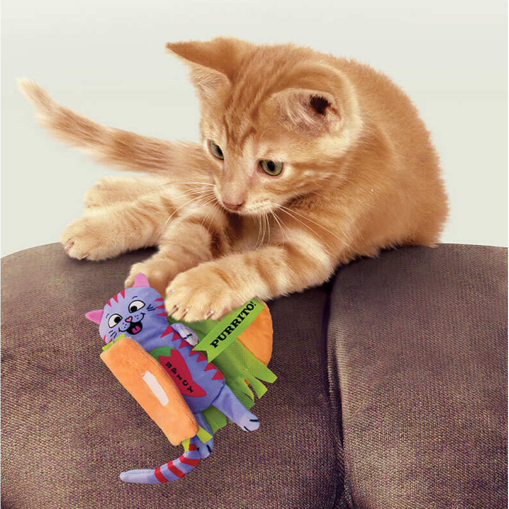 Котика в лаваші замовляли? Виходячи навіть з назви, не важко зрозуміти, що у цій іграшці поєднано багато цікавих деталей та матеріалів, які дуже подобаються котам. Плюшевий яскравий кіт з довгим хвостом сповнений веселощів. Інша частина у вигляді лаваша закривається на липучку, що саме собою цікаво для кішок. У лаваші захований наповнювач, який шарудить, супроводжує цікавими звуками кожен удар лапою і пробуджує природну мисливську поведінку.