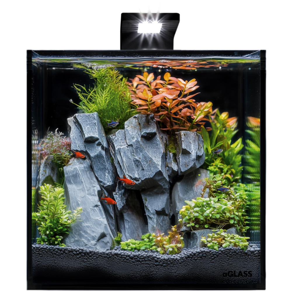 Набір укомплектований акваріумом серії aGlass Black із задньою стінкою, пофарбованою в чорний колір, що створює глибину простору та підкреслює красу підводного світу.