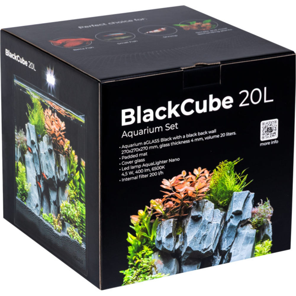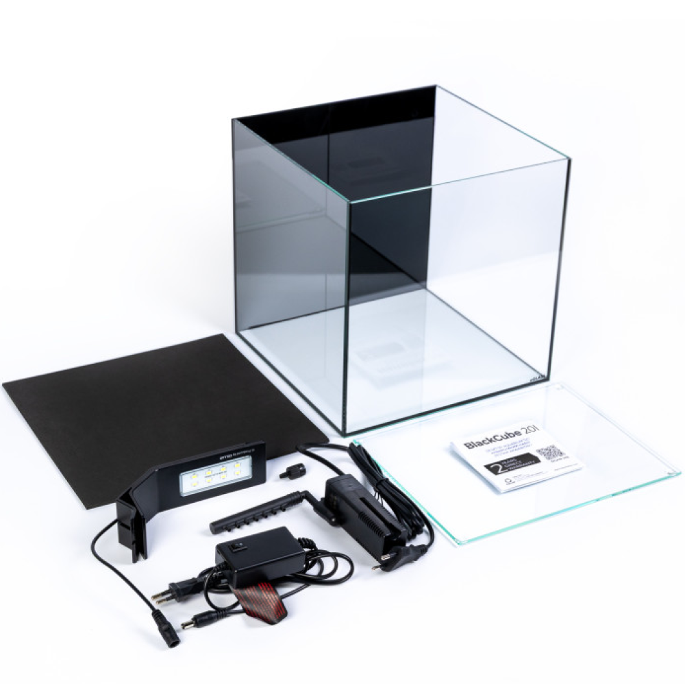 Акваріумний набір BlackCube 20 літрів для дому та офісу ідеально підходить для утримання маленьких риб, креветок і рослин (включаючи складні). Прекрасне доповнення до інтер’єру.