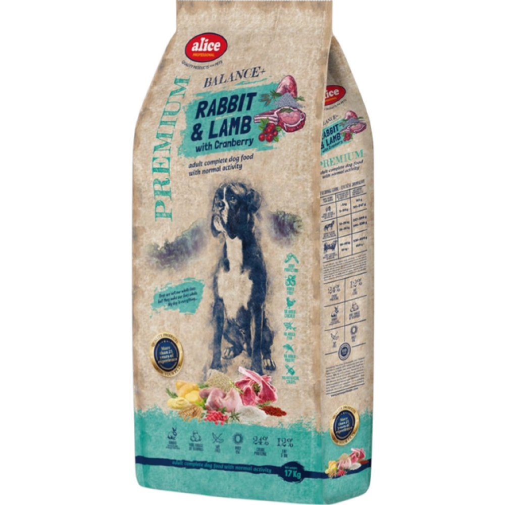 Alice Adult Balance+ Кролик та ягнятина з журавлиною — це повноцінний сухий корм преміум-класу, спеціально розроблений для дорослих собак усіх порід. Він повністю задовольняє щоденні потреби у харчуванні, підтримує життєву енергію, міцний імунітет та здорове травлення.