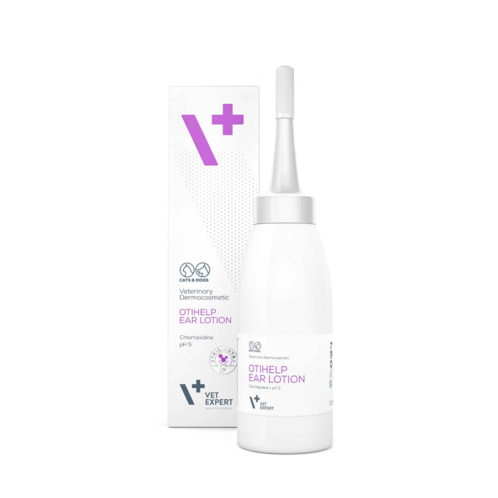 Vet Expert OtiHelp Ear Lotion (Вет Експерт ОтиХелп лосьйон) - антибактеріальний лосьйон для підтримання здоров'я вушних каналів у котів і собак. Рекомендовано при бактеріальних та грибкових інфекціях: дає змогу відновити фізіологічну функцію органів слуху у тварин і прискорити процес загоєння епідермісу.