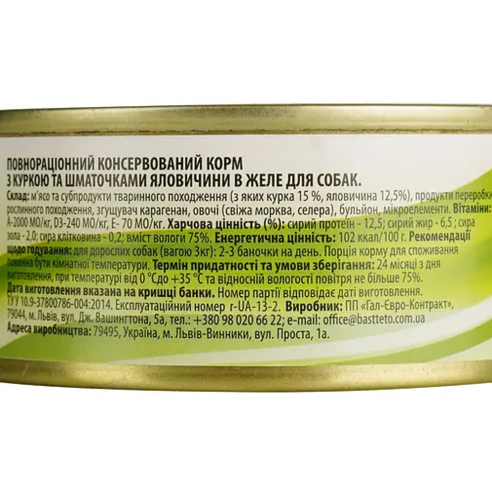 Яловичина та курка - це джерела високоякісних білків, які необхідні для підтримки здорової м'язової маси та загального здоров'я собаки. Соус надає корму апетитний смак та аромат, що робить його більш привабливим для собаки. Продукт містить високий відсоток вологи, що допоможе підтримувати гідратацію собаки, особливо якщо вона не п'є достатньо води.
