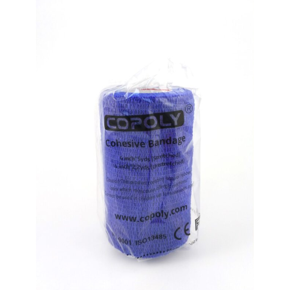 COPOLY Cohesive Bandage Самоклеючі бинти для тварин фіксує пов'язки будь-яких видів. Використовувати його можна без фіксаторів, оскільки шари приклеюються один до одного. Він має антибактеріальні властивості, захищає від вологи. Завдяки особливому просочення не липне до вовни і не завдає дискомфорту вихованцю при розмотуванні