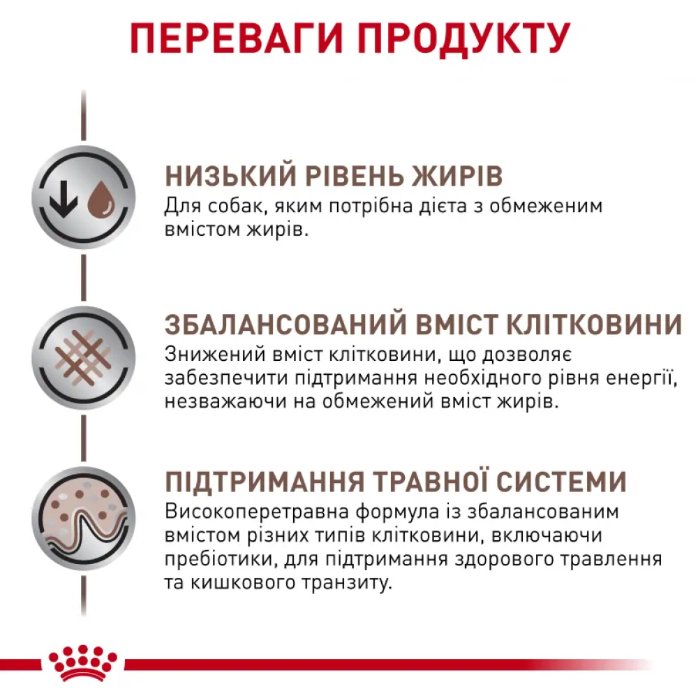 Для собак, яким потрібна дієта з обмеженим вмістом жирів.