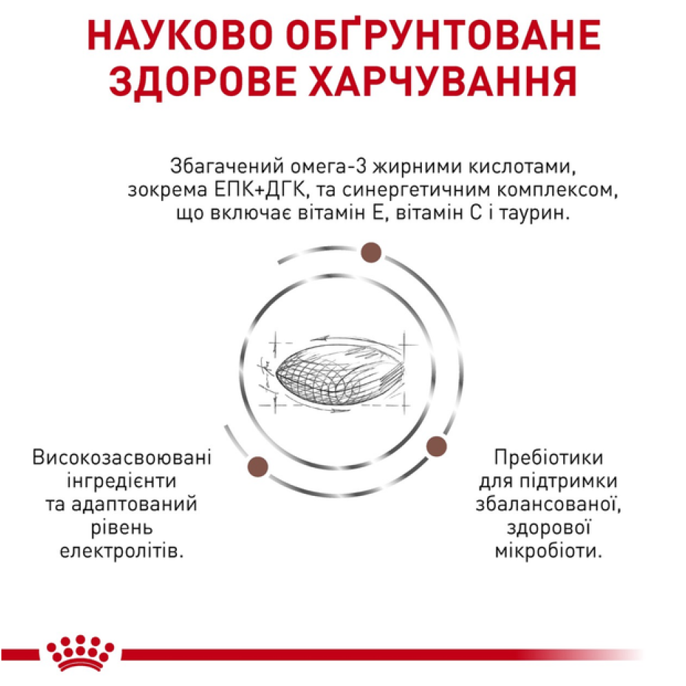 Захворювання травної системи перешкоджають засвоєнню поживних речовин з корму. У деяких випадках у собак виникають патології, що вимагають зниженого вмісту жирів у дієті; Високозасвоювана формула, що містить збалансований комплекс різних видів клітковини, зокрема пребіотики, сприяє підтримці здорового травлення та оптимальної якості випорожнень. Крім того, спеціальні маленькі гранули корму особливо зручні для розгризання невеликими собаками; Корисні властивості