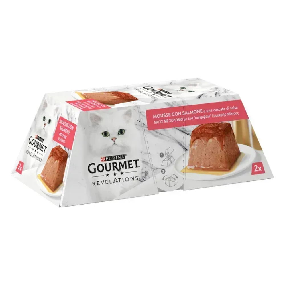 Gourmet Revelations - це вишукані делікатеси без зайвих зусиль. Мус має ніжну, повітряну консистенцію, яку коти зазвичай дуже люблять, доповнений апетитною підливкою, яка стікає зверху, додає привабливості та аромату.