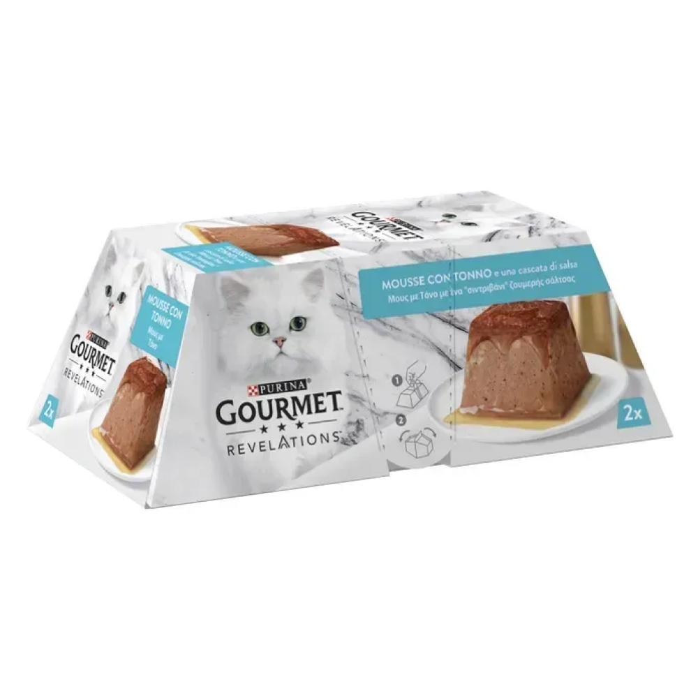 Gourmet Revelations - це вишукані делікатеси без зайвих зусиль. Мус має ніжну, повітряну консистенцію, яку коти зазвичай дуже люблять, доповнений апетитною підливкою, яка стікає зверху, додає привабливості та аромату.