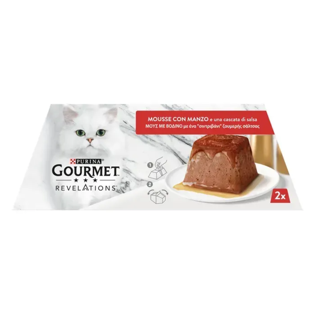 Gourmet Revelations - це вишукані делікатеси без зайвих зусиль. Мус має ніжну, повітряну консистенцію, яку коти зазвичай дуже люблять, доповнений апетитною підливкою, яка стікає зверху, додає привабливості та аромату.
