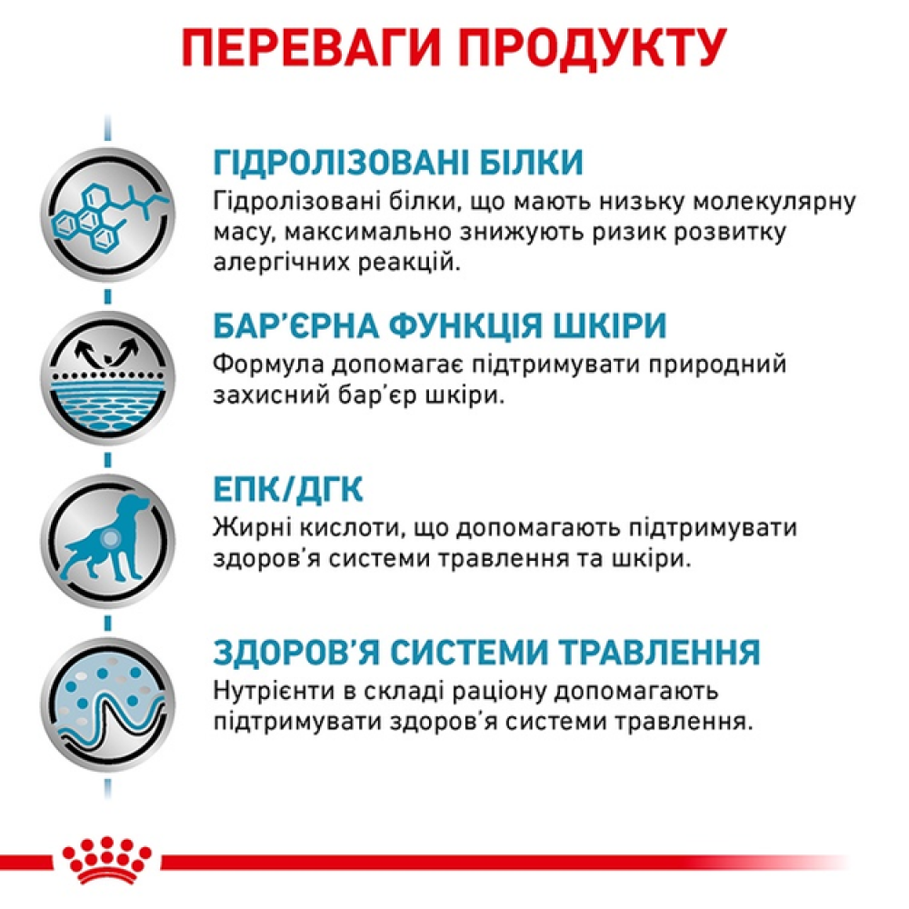 Низькомолекулярний гідролізований білок забезпечує гіпоалергенність корму.