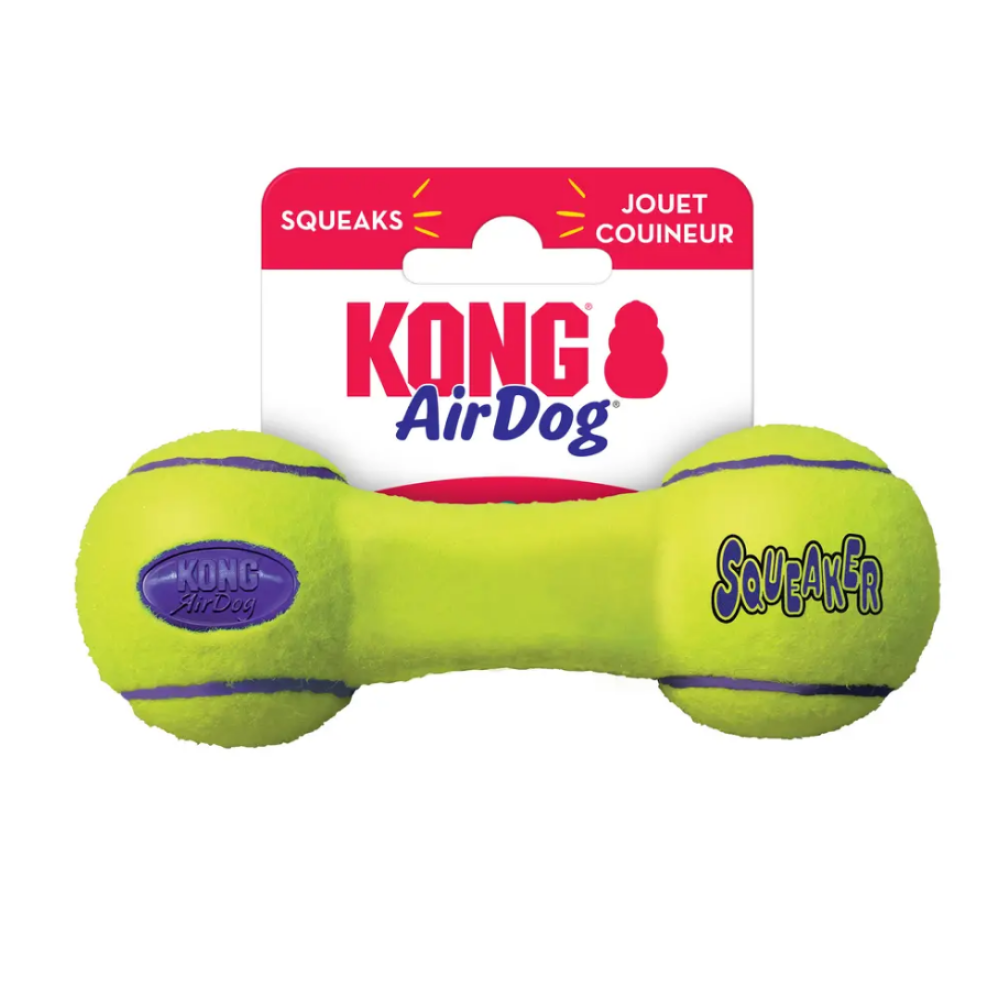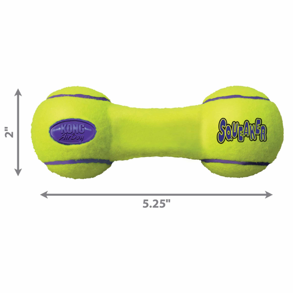 • В іграшці KONG Air Squeaker Dumbbell поєднані 2 традиційні собачі іграшки: тенісний м'ячик і пискавка, що робить її ідеальним вибором для ігор з апортом