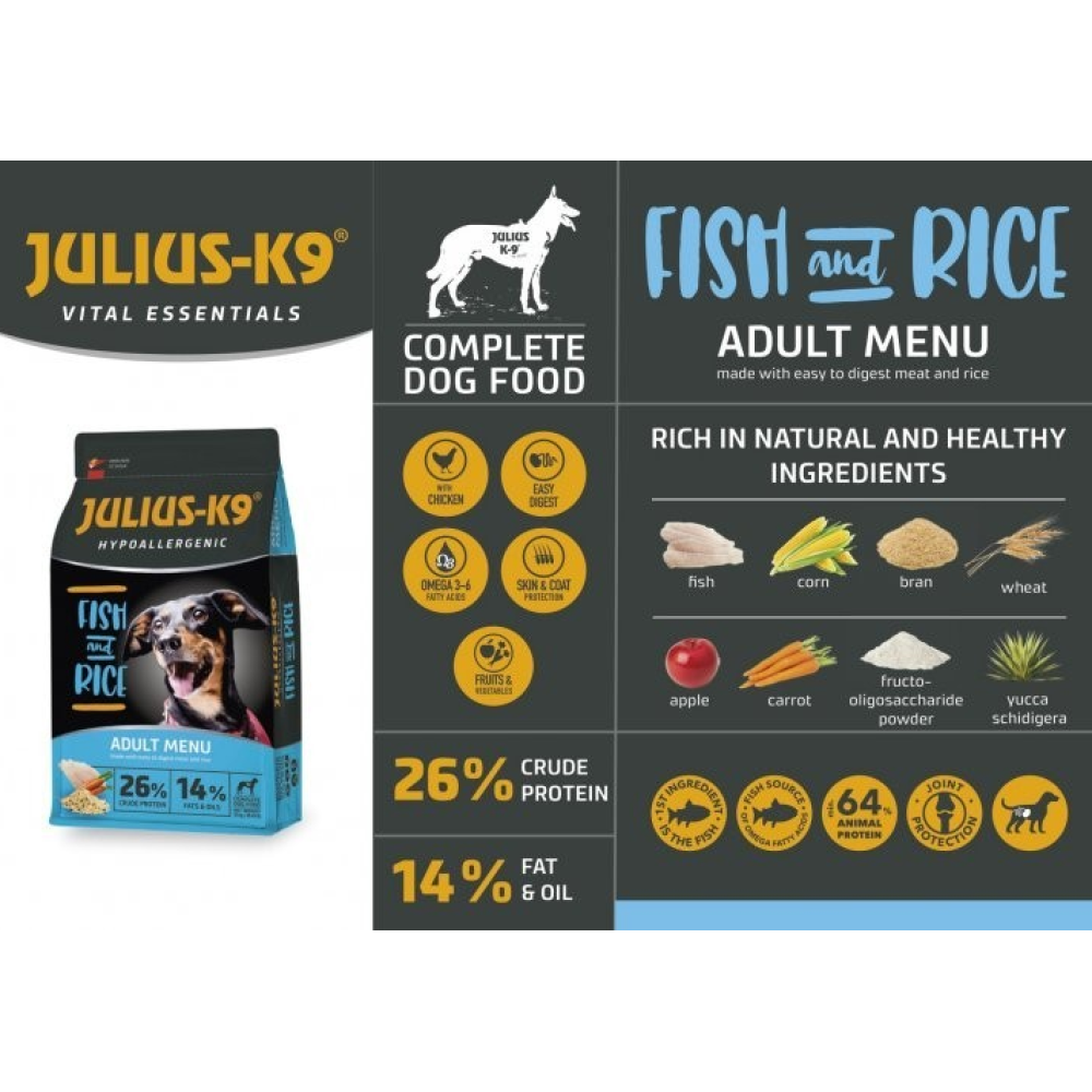 Сухий корм для собак JULIUS-K9 Fish&Rice Hypoallergenic гіпоалергенний з рибою та рисом - 3кг