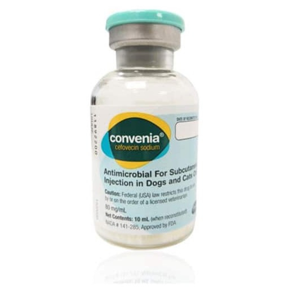 Конвенія 4 мл Загальні відомості Торгове найменування лікарського препарату Конвенія (Convenia). Міжнародна непатентована назва: цефовецін. Лікарська форма: сухий компонент – ліофілізований порошок для виготовлення розчину для ін'єкцій, рідкий компонент – розчин для ін'єкцій. На вигляд Конвенія являє собою ліофілізований порошок від білого до жовтого кольору, розчинник - прозору, безбарвну рідину. Склад Конвенія як діюча речовина містить цефовецин у формі натрієвої солі 41; і випускається у двох фасуваннях в комплекті з розчинником в окремому флаконі: Конвенія у флаконі ємністю 23 мл містить цефовецин - 852 мг; допоміжні речовини: метил парагідроксибензоат, пропил парагідроксибензоат, бензиловий спирт, натрію цитрату дигідрат, соляну кислоту та хлорид натрію (для доведення pH). Конвенія у флаконі ємністю 5 мл містить цефовецин - 340 мг, як допоміжні речовини: метил парагідроксибензоат, пропил парагідроксибензоат, бензиловий спирт, цитрата натрію дигідрат, соляну кислоту і хлорид натрію для доведення pH& Розріджувач цефовецину містить бензиловий спирт та воду для ін'єкцій. Фармакологічні властивості. Фармакотерапевтична група: антибактеріальний лікарський препарат групи цефалоспорин III покоління. Цефовецин – діюча речовина Конвенії має широкий спектр антибактеріальної активності проти більшості грампозитивних та грамнегативних мікроорганізмів, у тому числі Staphylococcus pseudintermedius та Pasteurella multocida, зазвичай виділяються при інфекціях шкіри у собак та котів; Prevotella oralis, Bacteroides spp. та Fusobacterium spp., виділених з абсцесів у кішок; Porphyromonas spp. та Prevotella spp., виділених при гострих інфекційно-запальних захворюваннях пародонту та ясен у собак, та Escherichia coli, що виділяється при інфекціях сечовивідних шляхів у собак та котів. Механізм дії цефовітину полягає в блокуванні ферментів транспептидаз, що зв'язують пептидоглікан клітинної стінки, внаслідок чого бактеріальна клітина руйнується. Цефовецин швидко всмоктується з місця ін'єкції, досягаючи піку концентрації у плазмі крові у собак через 6 годин, у кішок – через 2 години. Терапевтичні концентрації антибіотика після одноразового введення лікарського препарату в організмі собак та котів зберігаються протягом 14 днів. Цефовецин більш ніж 96& # 37; зв'язується з білками плазми крові, виводиться з організму головним чином із сечею у незмінному вигляді, період напіввиведення препарату у собак – 5,5 діб, у кішок – 6,9 діб.