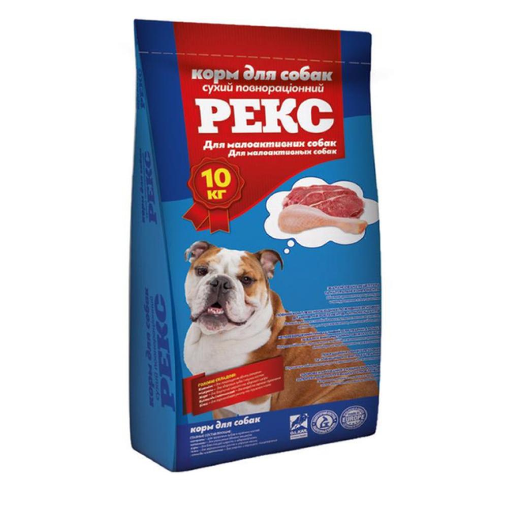 Корм виготовлений на сучасному закордонному устаткуванні, з використанням високоякісної сертифікованої сировини, прийнятої провідними ветеринарними фахівцями. "Корм Рекс" є улюбленим кормом для собак, тому що має неперевершений привабливий для тварин аромат без застосування штучних ароматизаторів. У його складі міститься протеїн, вітаміни та мікроелементи для гарного засвоєння, активізації обміну речовин, стану шкіри та волосяного покриву, кісток, загального здоров'я тварин.