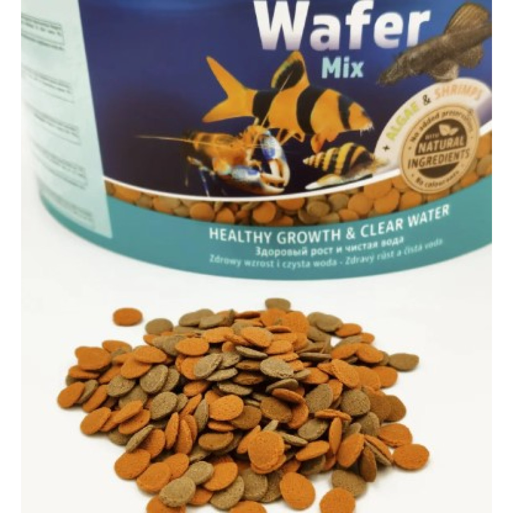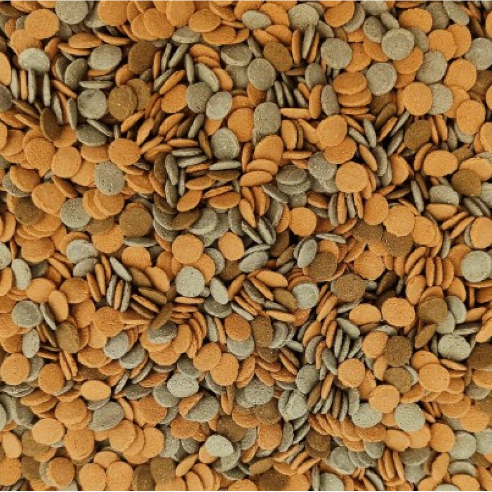 До складу корму включено сушені креветки, які є природною кормовою сировиною для різних рибок. Цей продукт підходить для всіх типів травоїдних, хижаків та всеїдних донних риб. Водорості спіруліни підвищують опірність організму до хвороб. Завдяки твердій консистенції корм не забруднює воду. Також корм не викликає алергії у людей.