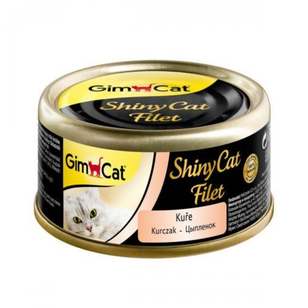 GimCat Shiny Cat Filet - це ніжні та соковиті шматочки м’яса курки, приготовані в бульйоні, з додаванням рису. Вологий корм преміумкласу для котів, збагачений протеїнами, не містить штучних барвників, ароматизаторів, підсилювачів смаку, генно модифікованих складових, консервантів.