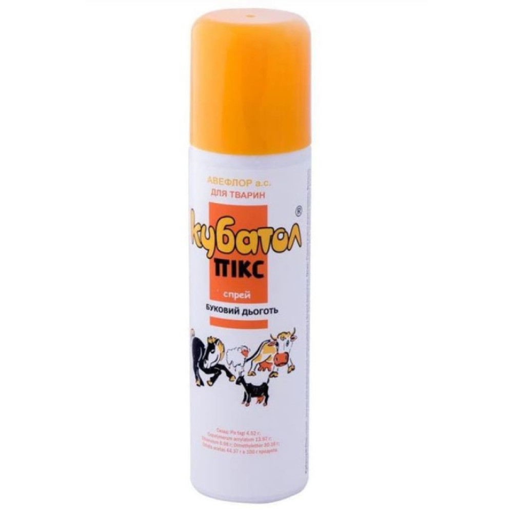 Кубатол Пікс Аерозоль в якості діючої речовини містить буковий дьоготь - 4,6%, а в якості допоміжних речовин - акриловий сополімер, диметиловий ефір, ацетат етилу, денатурований етанол.