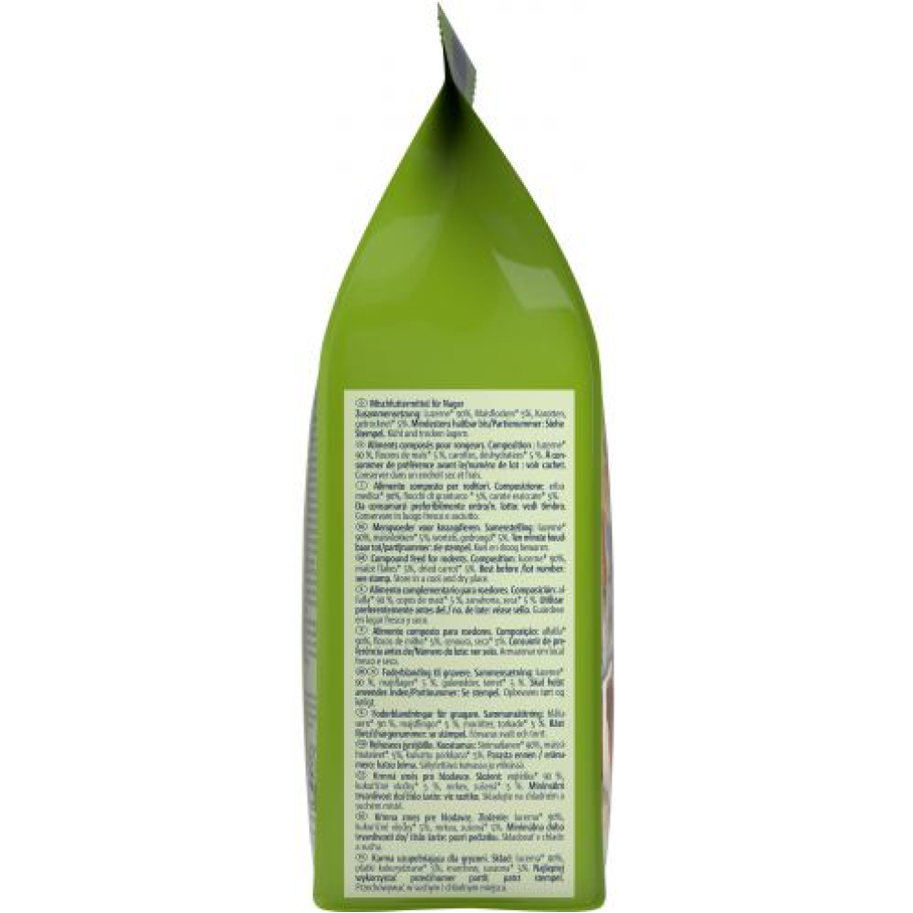 Склад: люцерна - 90%, морква сушена - 5%, кукурудза - 5%, сира клітковина 27.0%.