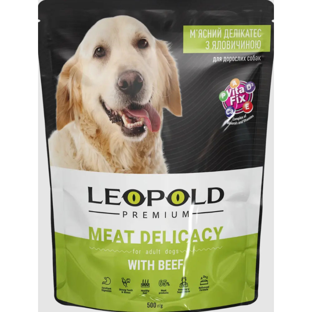 Вологий корм для собак Леопольд Premium — це повноцінне харчування до складу якого входять тільки натуральні продукти, а також багато корисних мінералів і вітамінів, що дозволяють вашому улюбленцю бути здоровим і задоволеним.