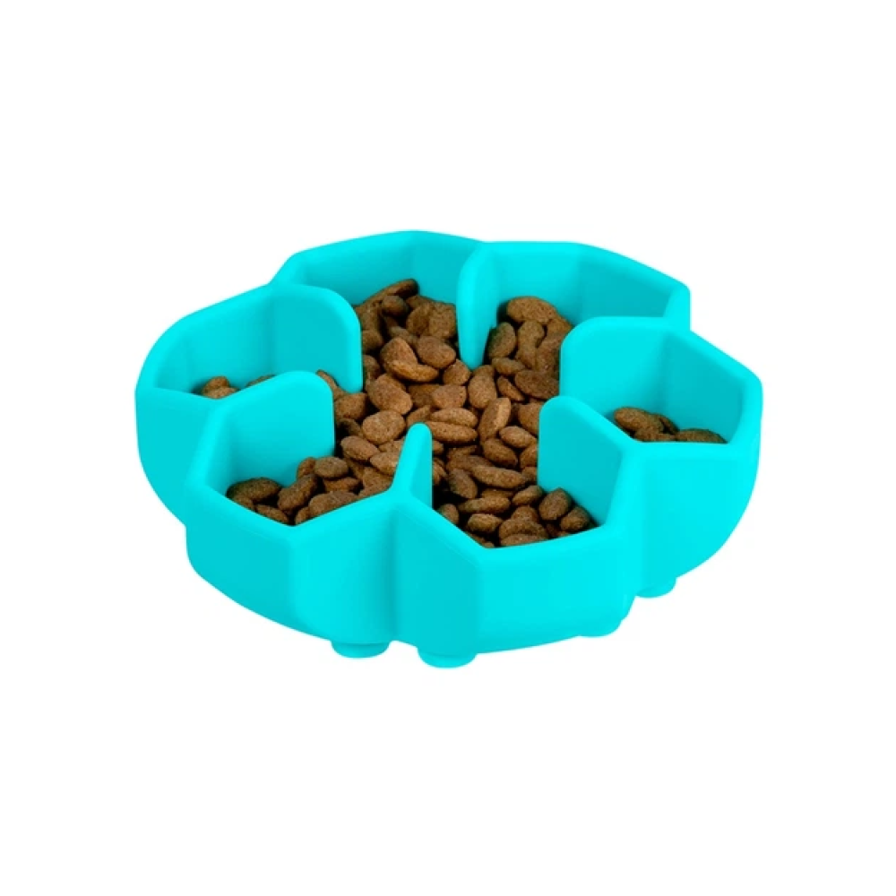 - Сприяє повільному харчуванню, що допомагає знизити ризик переїдання та проблем з травленням у тварин