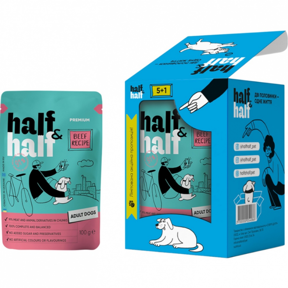 Half&Half говорить мовою дружби, тож набір із шести паучів для песиків стане смачним способом сказати своєму хвостику: «Ти мій найкращий друг!».