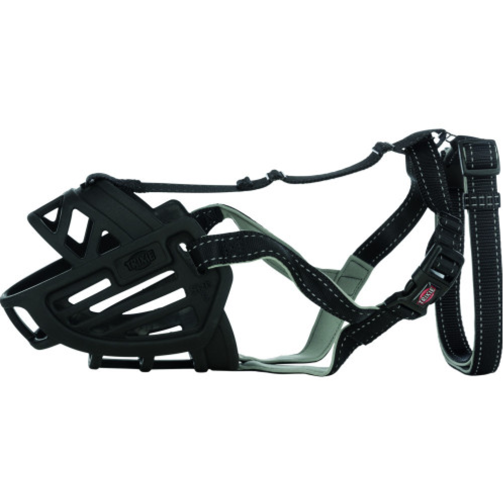 Зручний та безпечний гнучкий намордник Trixie Muzzle Flex виготовлений із гуми, має ергономічну посадку, зберігаючи при цьому стабільну форму. Завдяки потрійному кріпленню намордник дуже надійний. Він дає можливість собаці пити воду, їсти ласощі, не перешкоджає диханню.