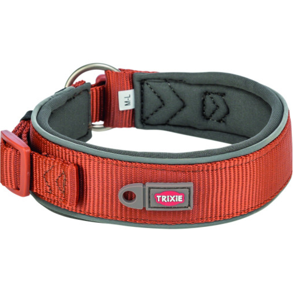 Нашийник Trixie Premium екстраширокий – це високоякісний міцний аксесуар, який забезпечить комфорт і безпеку вашому собаці під час прогулянок. Неопренова підкладка робить його м'яким і зручним для носіння. Нашийник має пряжку із захистом від натягнення, яка запобігає випадковому розстібанню. Світловідбиваючі елементи нашийника допомагають песику стати помітним у темряві для водіїв. Нашийник має петлю для кріплення жетона або мигалки, а також можливість кріплення трекера на вузькій застібці.
