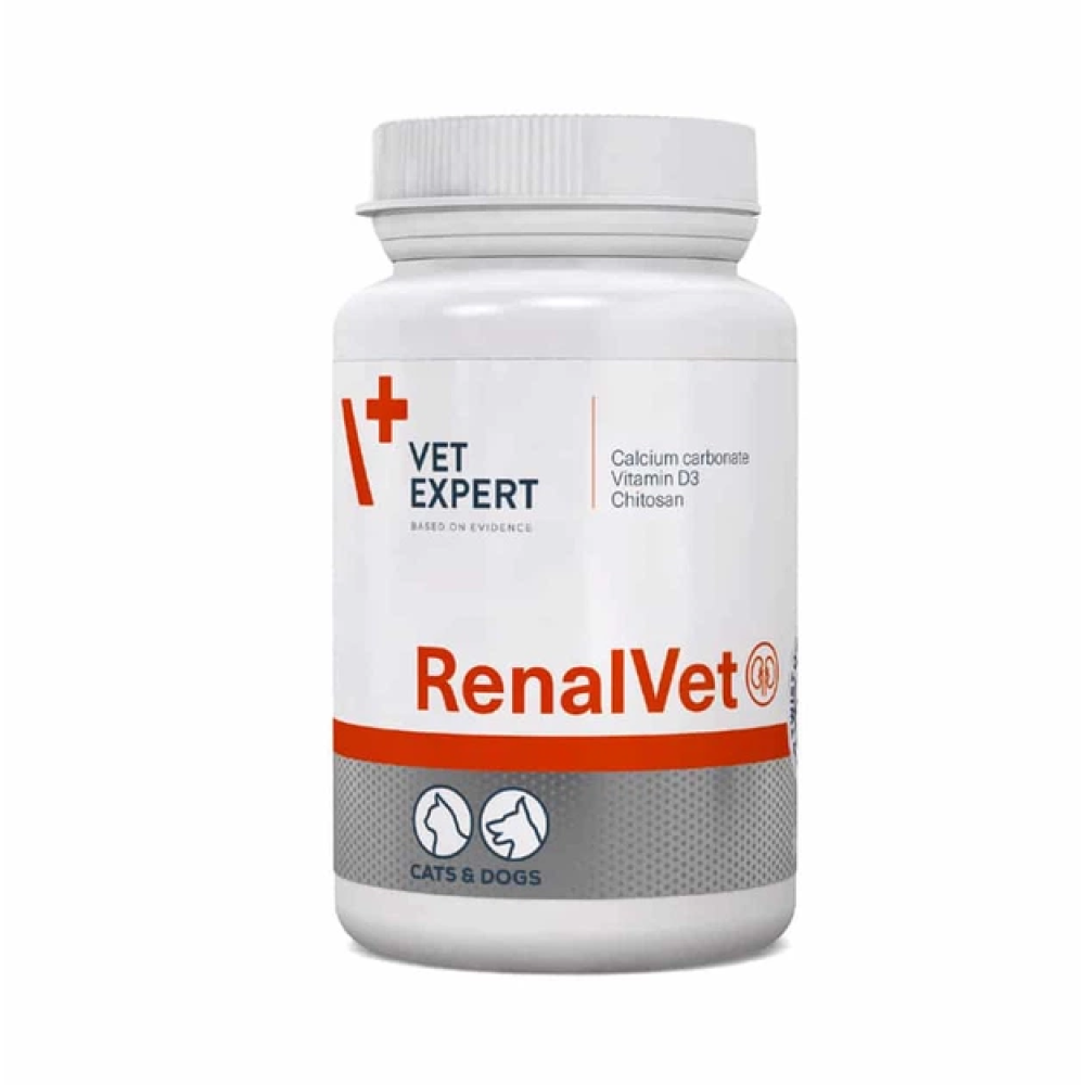 Vet Expert RenalVet (Вет Експерт РеналВет) – харчова добавка для котів і собак, у яких діагностовано хронічну хворобу нирок. Фосфорхелатуючий агент ефективно знижує абсорбцію фосфору зі шлунково-кишкового тракту та рівень фосфору в сироватці крові, зменшує концентрацію паратгормону та екскрецію фосфору з сечею. Крім того, добавка запобігає розвитку дефіциту вітаміну D, є дуже смачною та ідеально підходить для тварин, які страждають від втрати апетиту – найбільш частого симптому ниркової недостатності та уремії. Рекомендований для вживання під час іжі. Переваги: