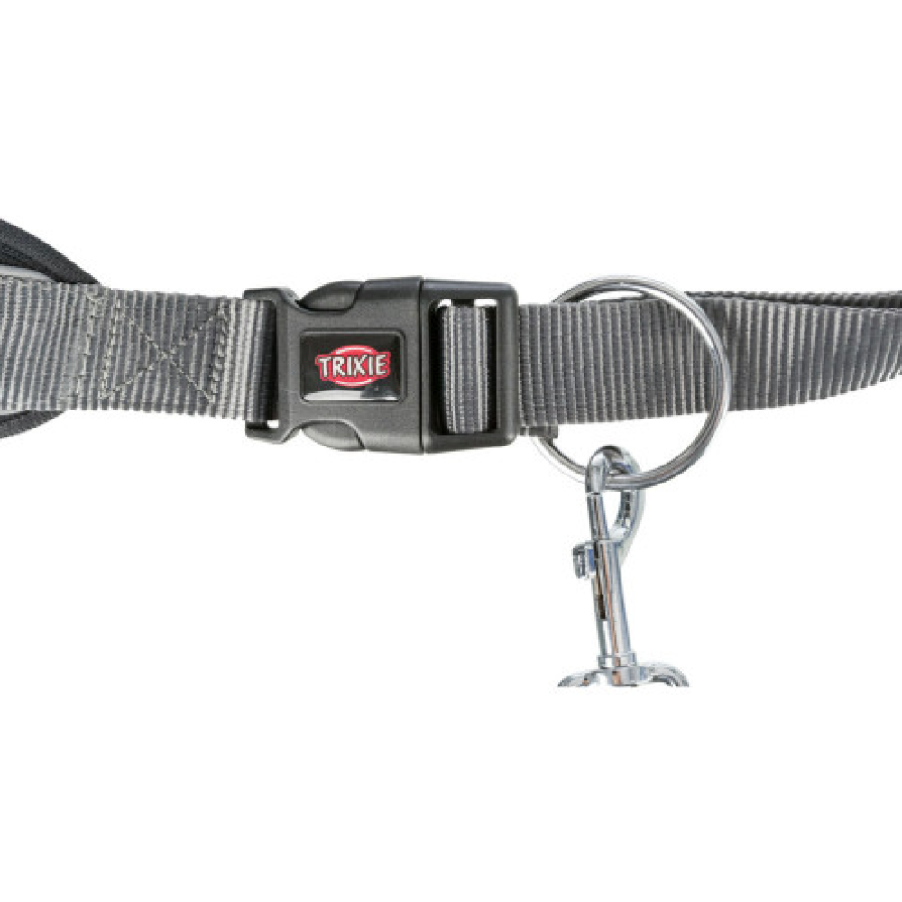Пояс із повідцем Trixie – прекрасний спосіб займатися спортом разом із улюбленцем: для бігу, скандинавської ходьби. Завдяки широкій неопреновій підкладці він зручний у носінні, амортизатор пом'якшує різкі рухи собаки. Пояс регулюється під ваш об’єм, а повідець можна використовувати окремо, для звичайних прогулянок. Зі світловідбиваючими елементами.
